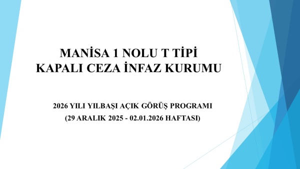 29 ARALIK 2025 - 02.01.2026 HAFTASI YILBAŞI AÇIK GÖRÜŞ PROGRAMIDIR. Diğer haftalarda güncel açık ve kapalı ziyaret programı yaptırılıcaktır.